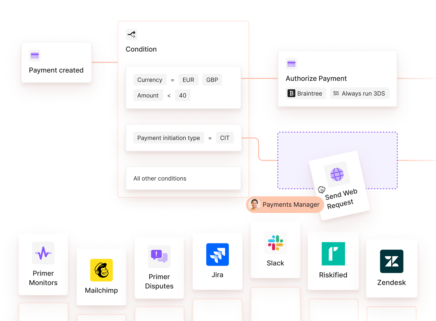 "Workflows are one of my favourite parts of Primer. They give us complete control over how we route payments without needing to call on engineering resources to make changes."