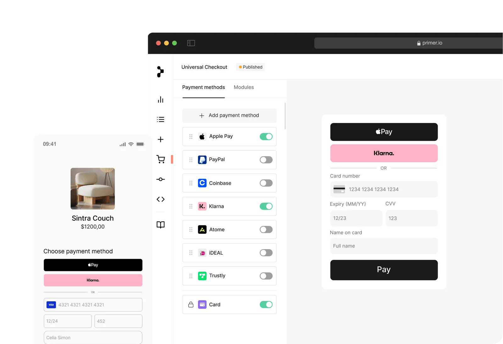 With Primer, you can activate Klarna, Afterpay, and other payment methods all in less time than it takes a shopper to check out. That means you can scale without leaving sales on the table, and meet your customers wherever they are.