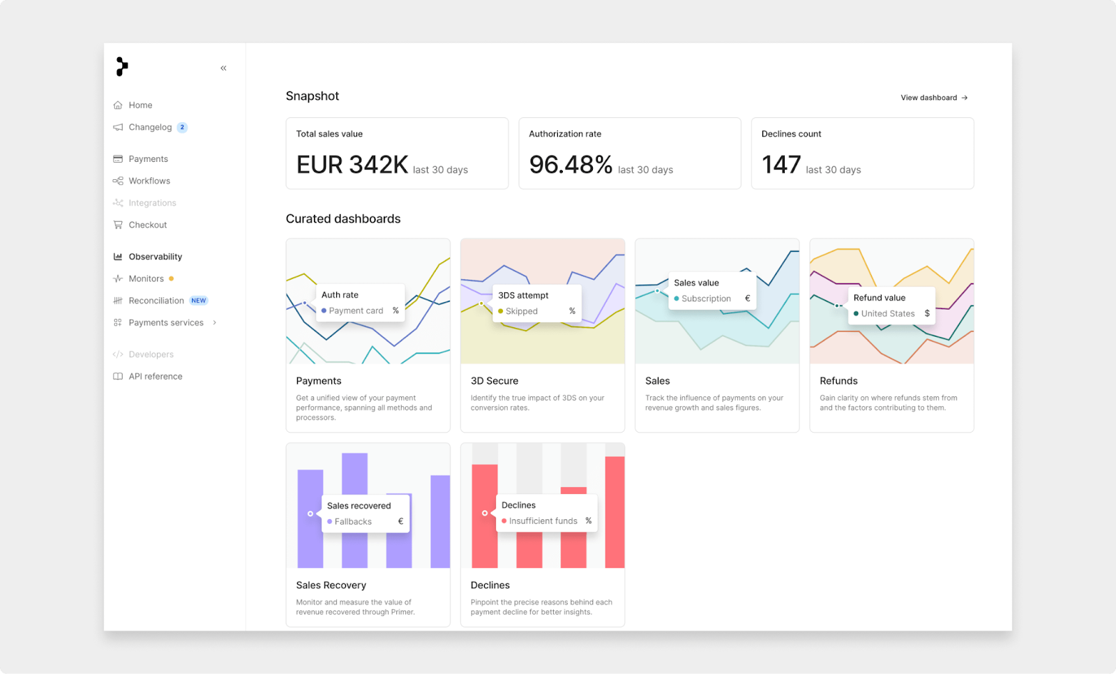 Once you’ve set up Klarna, Afterpay, or any other method, Primer’s Observability Dashboard lets you see how they perform in real time.