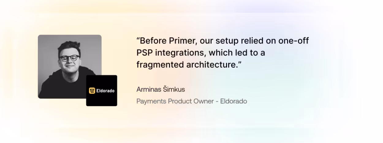 With Primer, Eldorado gained reliability through multi-PSP redundancy, the ability to launch in new regions quickly, and full control over routing, retries, and analytics. Today, teams beyond payments, like finance and support, are also using Primer to improve operations and deliver a better customer experience.