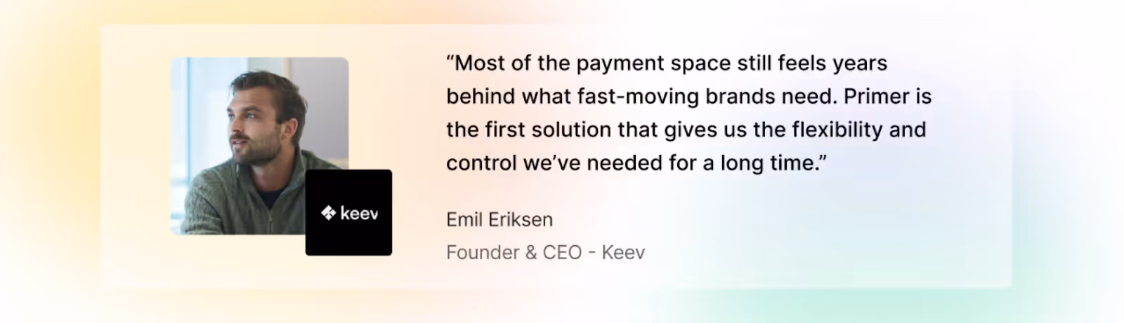 Read the full case study: Keev builds brands fast. Primer makes sure payments don’t slow them down