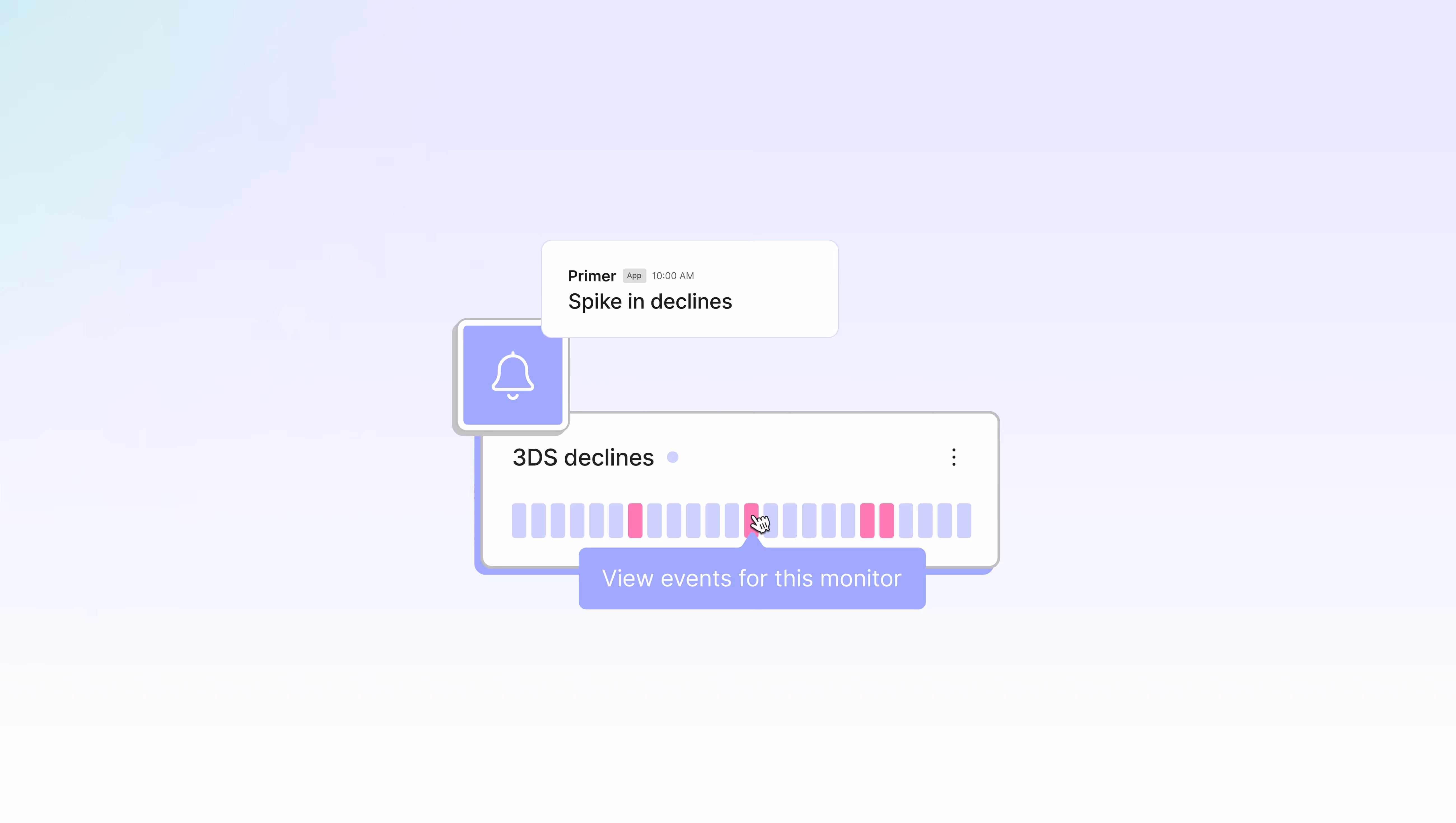 Receive real time alerts to critical changes in payments performance with Primer Monitors.