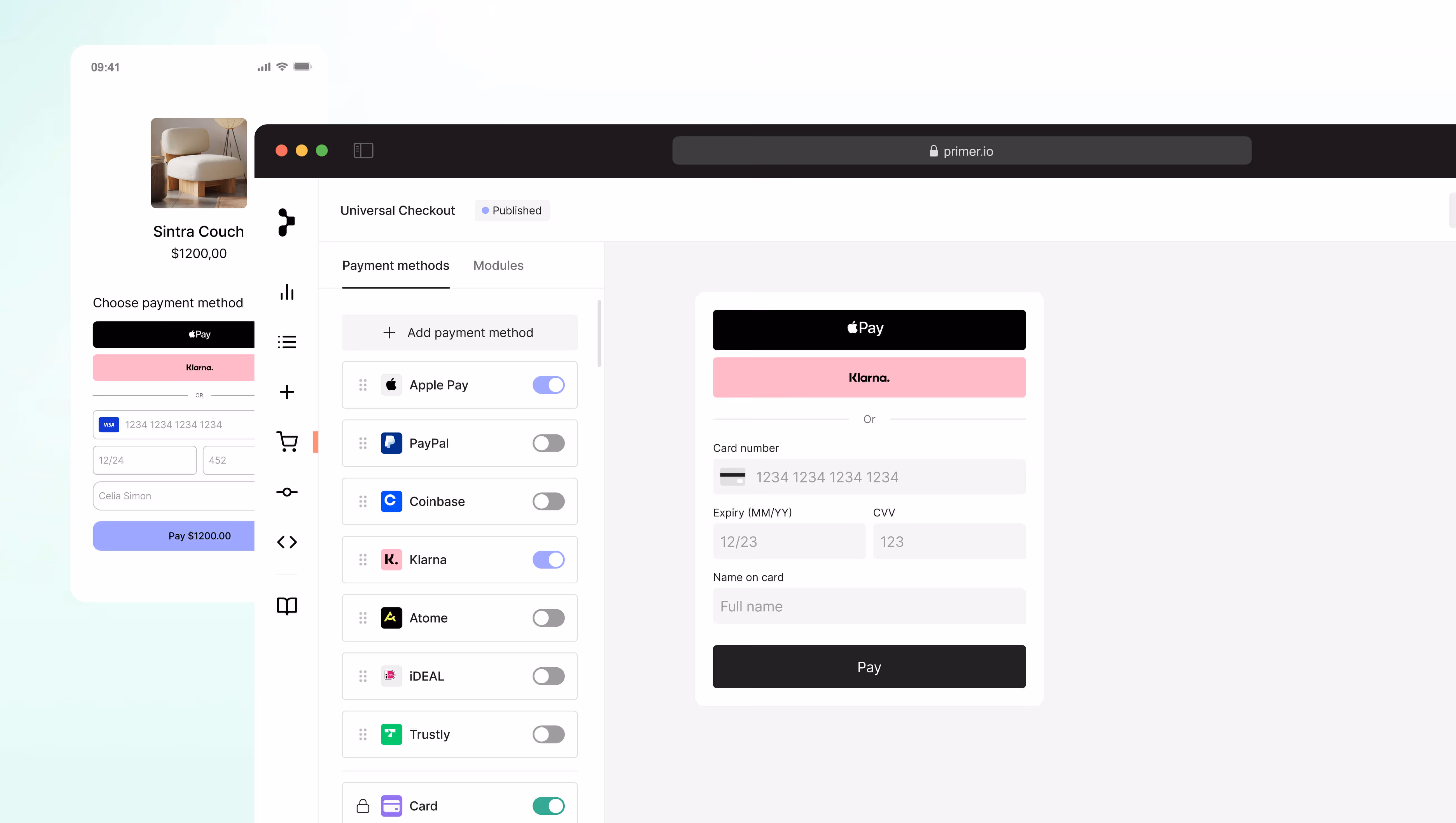 Tailor the checkout and payment methods offered to match your customer's preferences with Universal Checkout.