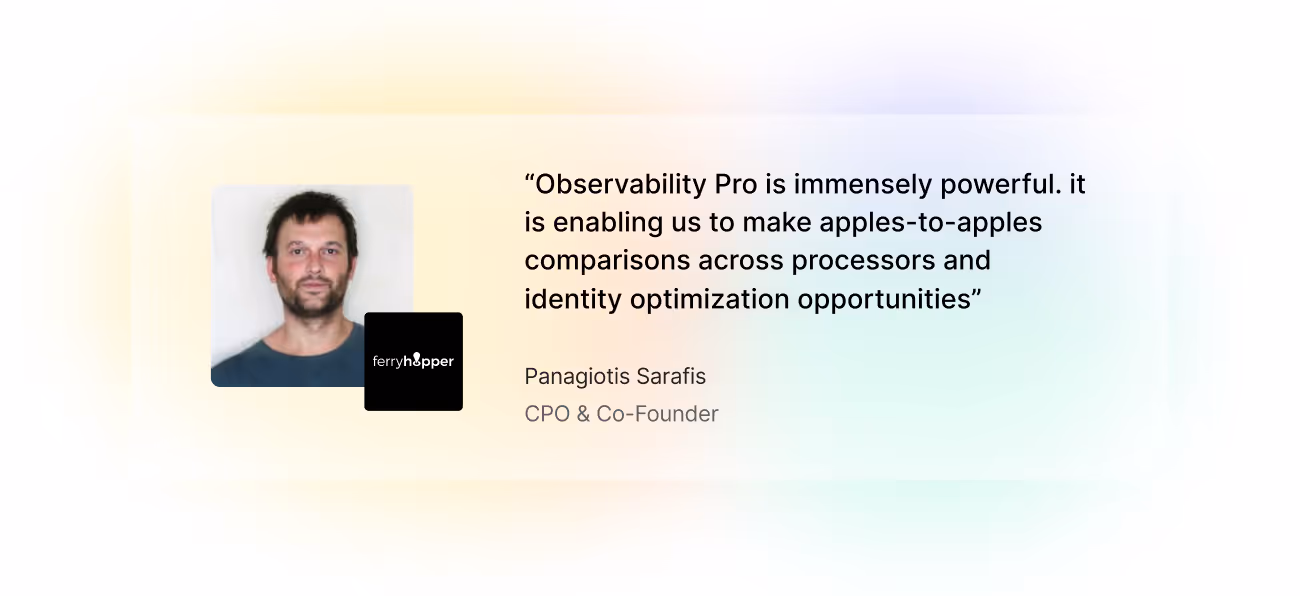 Observability gives you a complete view of your entire payment stack in one place. It pulls in data from all your processors, payment methods, and services so you can see what’s happening, spot issues faster, and understand what’s driving performance.