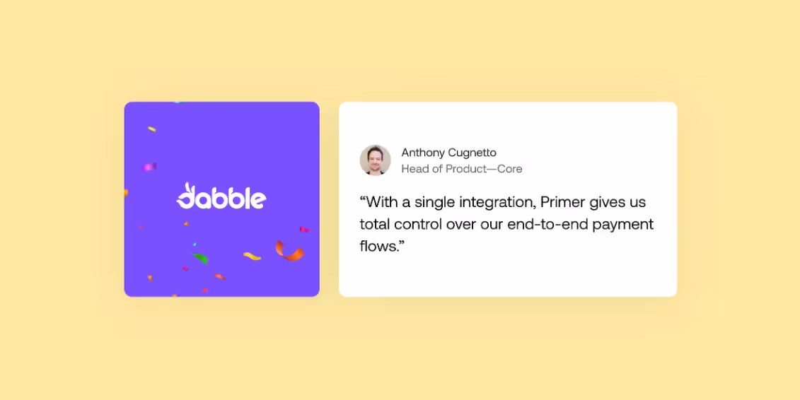Dabble is one of Australia’s fastest-growing bookmakers, built on a social-first approach to betting. With traffic peaking during major events like the Melbourne Cup, performance under pressure is non-negotiable. To drive scale and reliability across payment flows, Dabble turned to Primer.