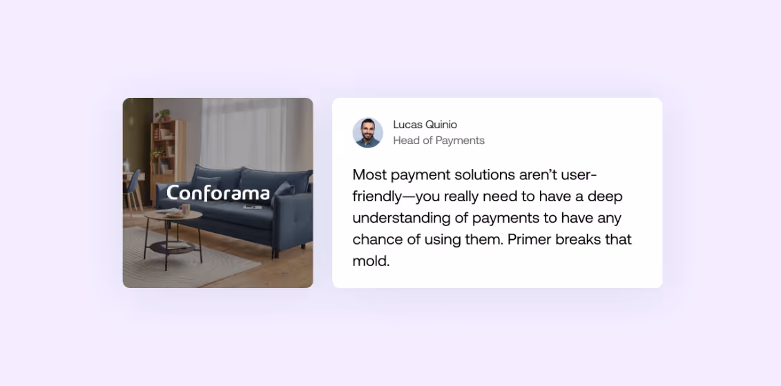 “Primer emerged as the ideal solution because of its usability, payment optimization tools, and proven track record.” — Lucas Quinio, Head of Payments at Conforama