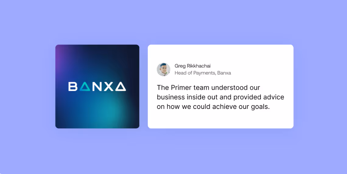 Collaborating with Primer provides us with a comprehensive solution, flexibility for customization, and room for innovation.” — Greg Rikkhachai, former Head of Payments at Banxa