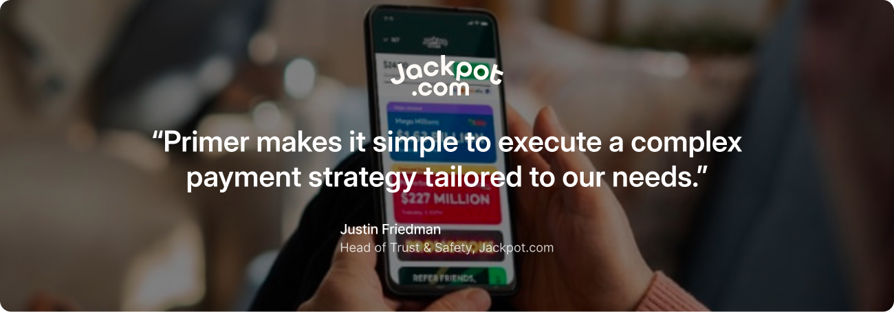 "Payments are at the core of our operations," emphasizes Justin Friedman, Head of Trust & Safety at Jackpot.com. "Primer is helping us elevate our payment game to bring a first-class experience to more customers across the United States."