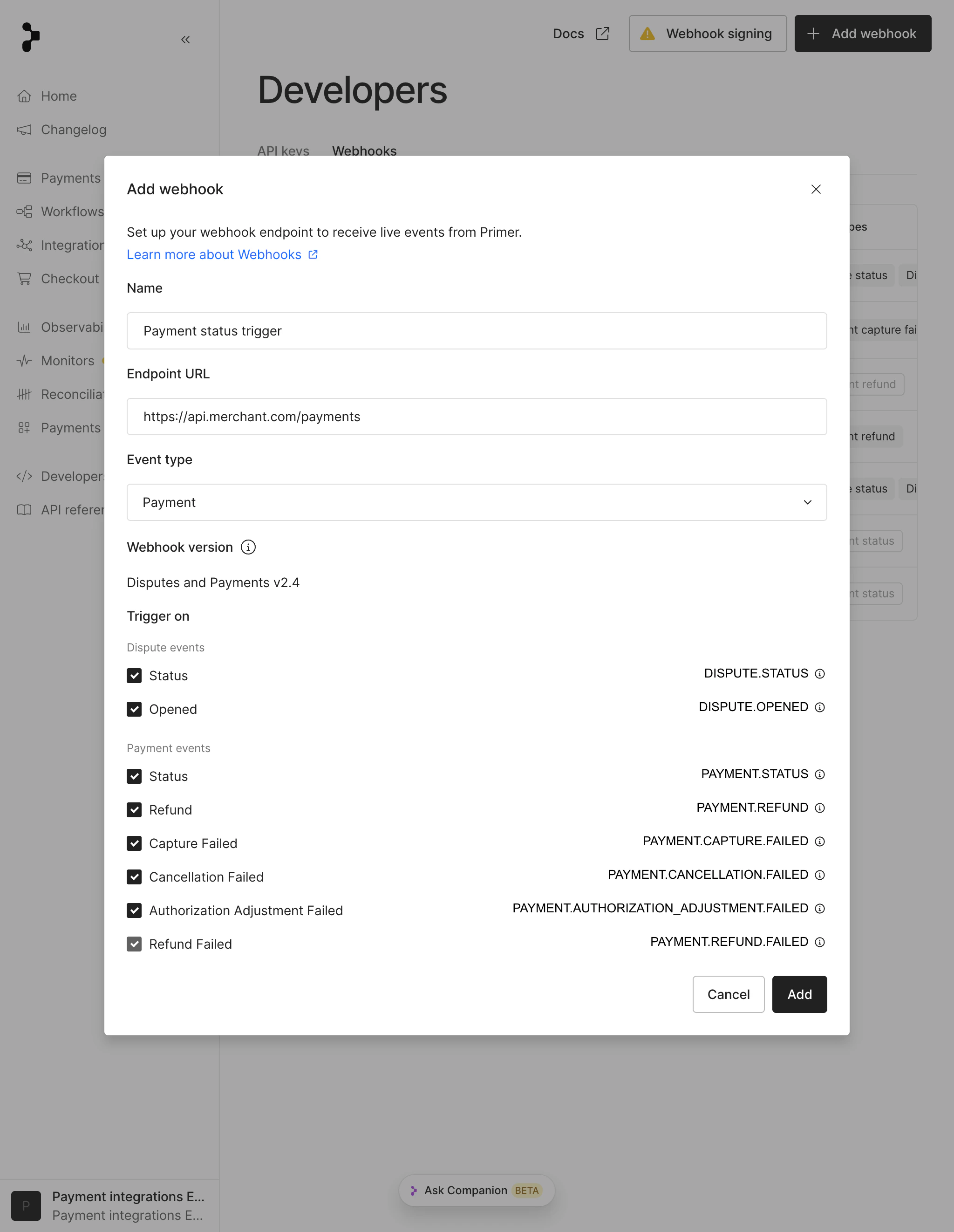 Primer uses a 10 second timeout for webhook delivery attempts.If your endpoint does not respond within this window, the attempt is treated as a failure and retries may happen.