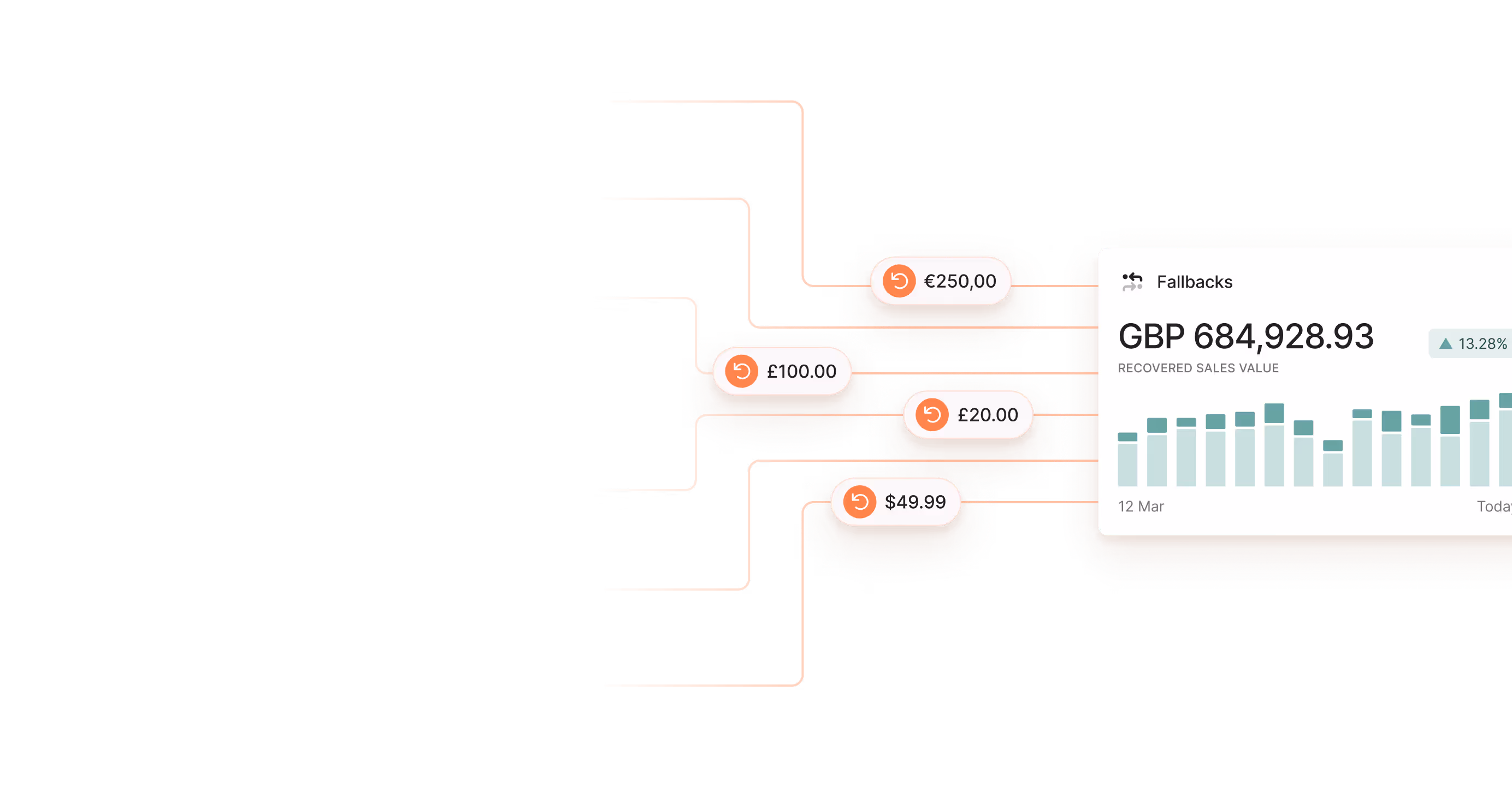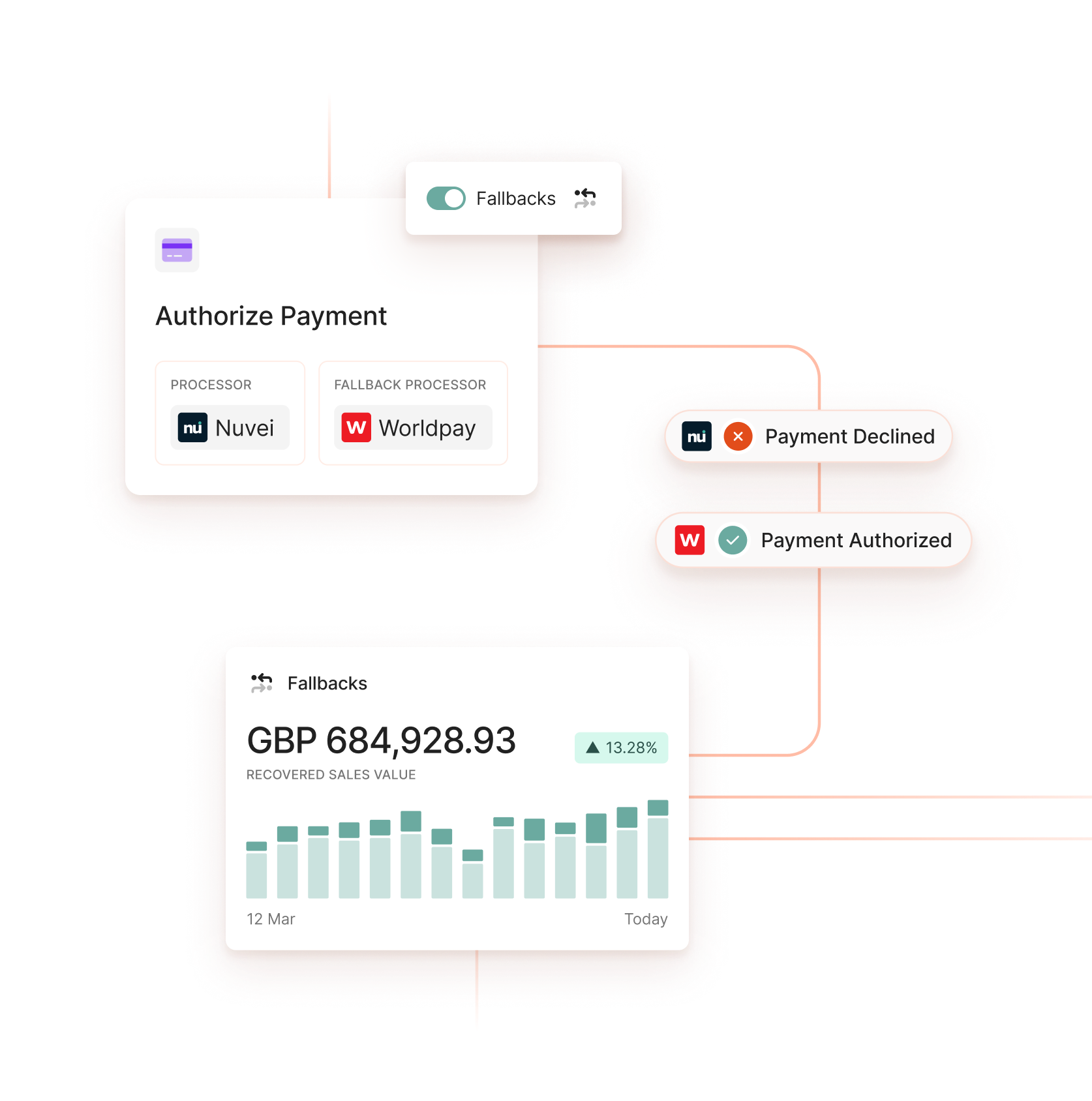 Switch on Fallbacks in your workflow, choose backup processors, and recover revenue instantly.