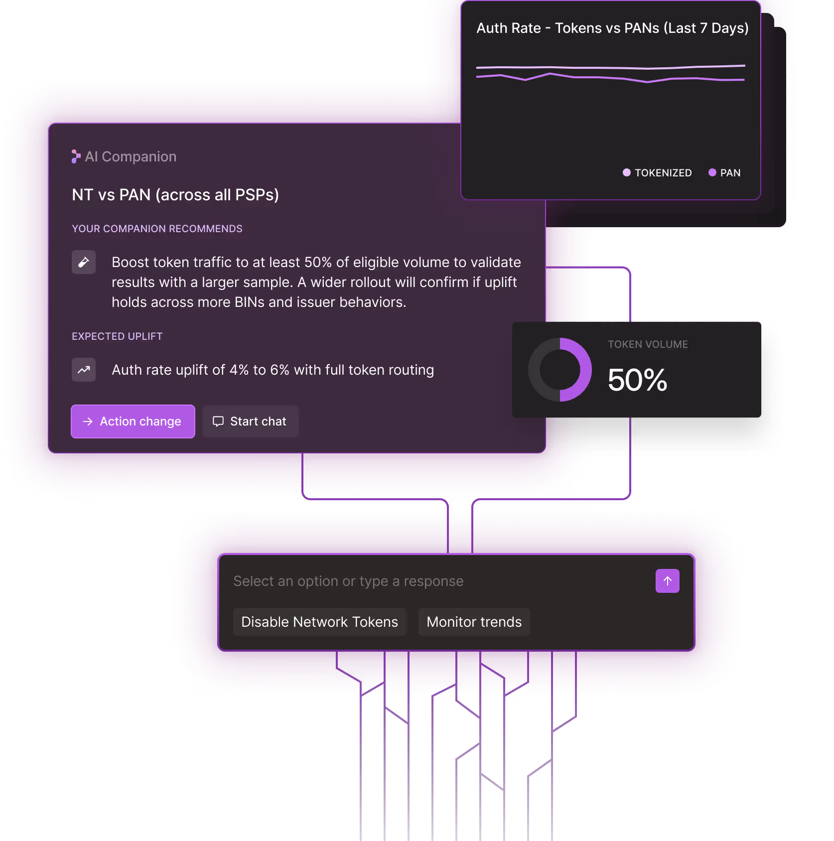 Move at the speed of an entire payments team. Primer Companion learns from billions of data points across your payments flow, surfaces what matters, and acts on it instantly - all within Primer.