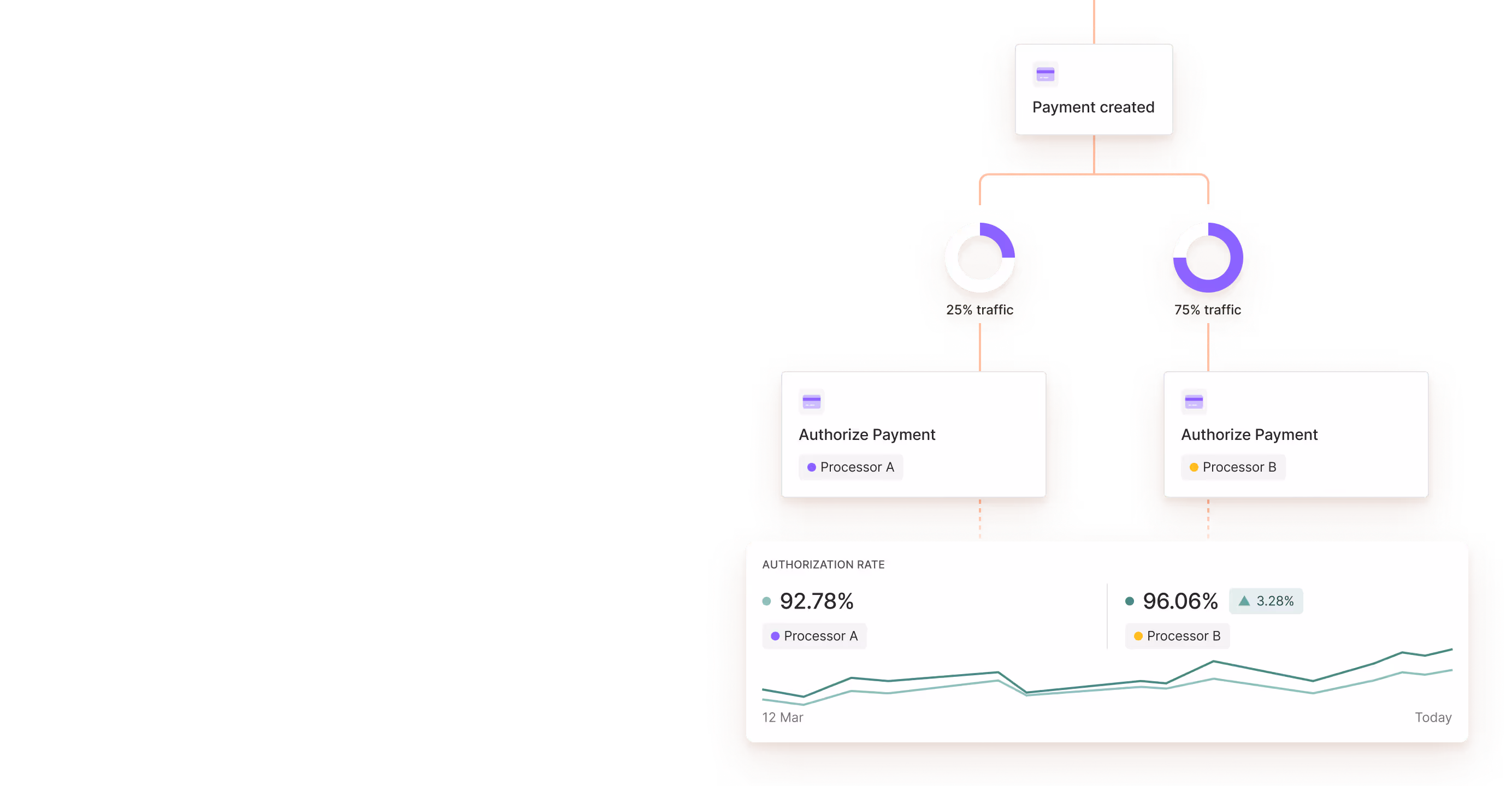 Run A/B tests, monitor routing strategies, and validate provider changes - all without engineering effort. Learn fast, adapt faster, and grow revenue with every iteration.